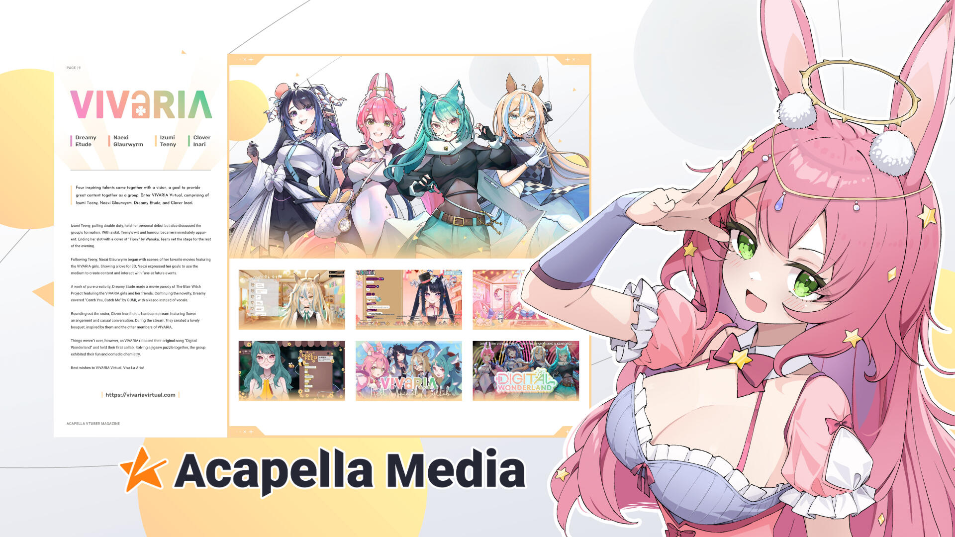 VIVARIA Virtual is Featured in Acapella Media Vtuber Magazine in their January 2025 Edition as a full spread, as well as mentioned on the cover of this month's issue!A link to this issue can be found here